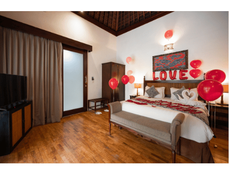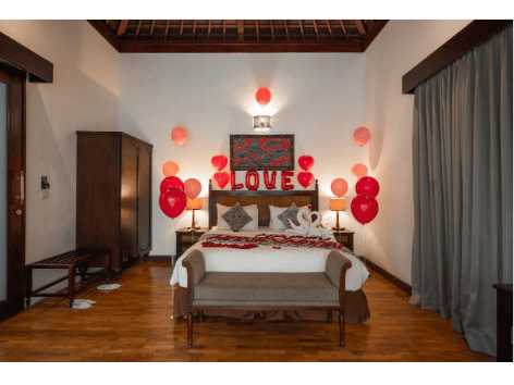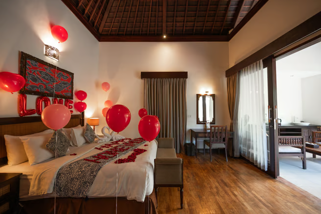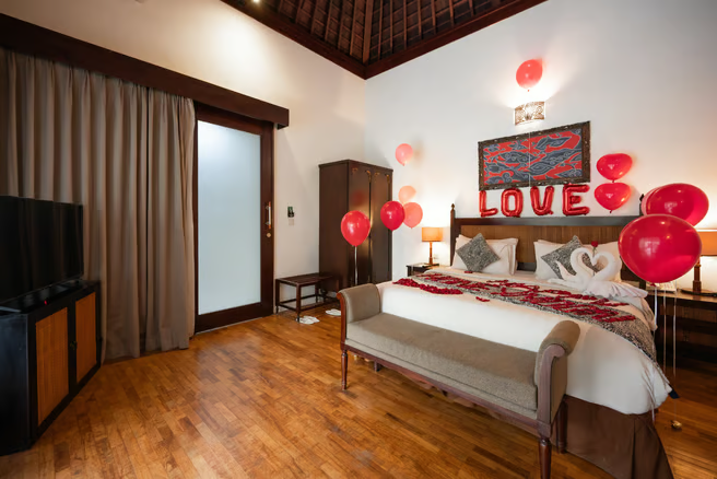 A romantic private pool villa experience in Seminyak, Bali, designed for couples celebrating love. Enjoy special honeymoon decorations, intimate dining options, and a peaceful villa atmosphere — perfect for creating unforgettable moments during your stay in Bali.